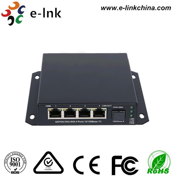 E- Link Industrial POE Fiber Media Converter 4 Port EPON ONU With PoE 1 Uplink GEPON Port Images |